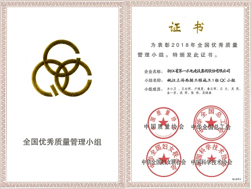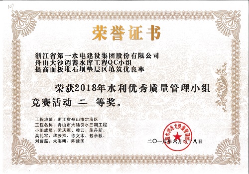 2018水利優(yōu)秀質(zhì)量管理小組二等級(舟山大沙調(diào)蓄水庫工程QC小組)
