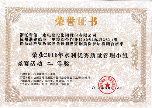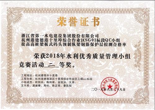 2018水利優(yōu)秀質(zhì)量管理小組二等級(杭州港建德十里埠綜合作業(yè)區(qū)SG01標(biāo)段QC小組)