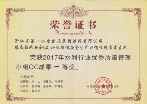 2017年 水利行業(yè)優(yōu)秀質(zhì)量管理小組QC成果一等獎——降低安全生產(chǎn)習(xí)慣性違章發(fā)生率