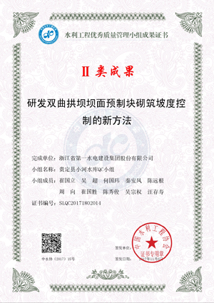 水利工程優(yōu)秀質(zhì)量管理小組二類成果——研發(fā)雙曲拱壩壩面預(yù)制塊砌筑坡度控制的新方法