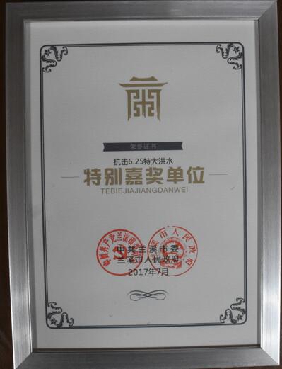 2017年度抗擊6.25特大洪水特別嘉獎單位