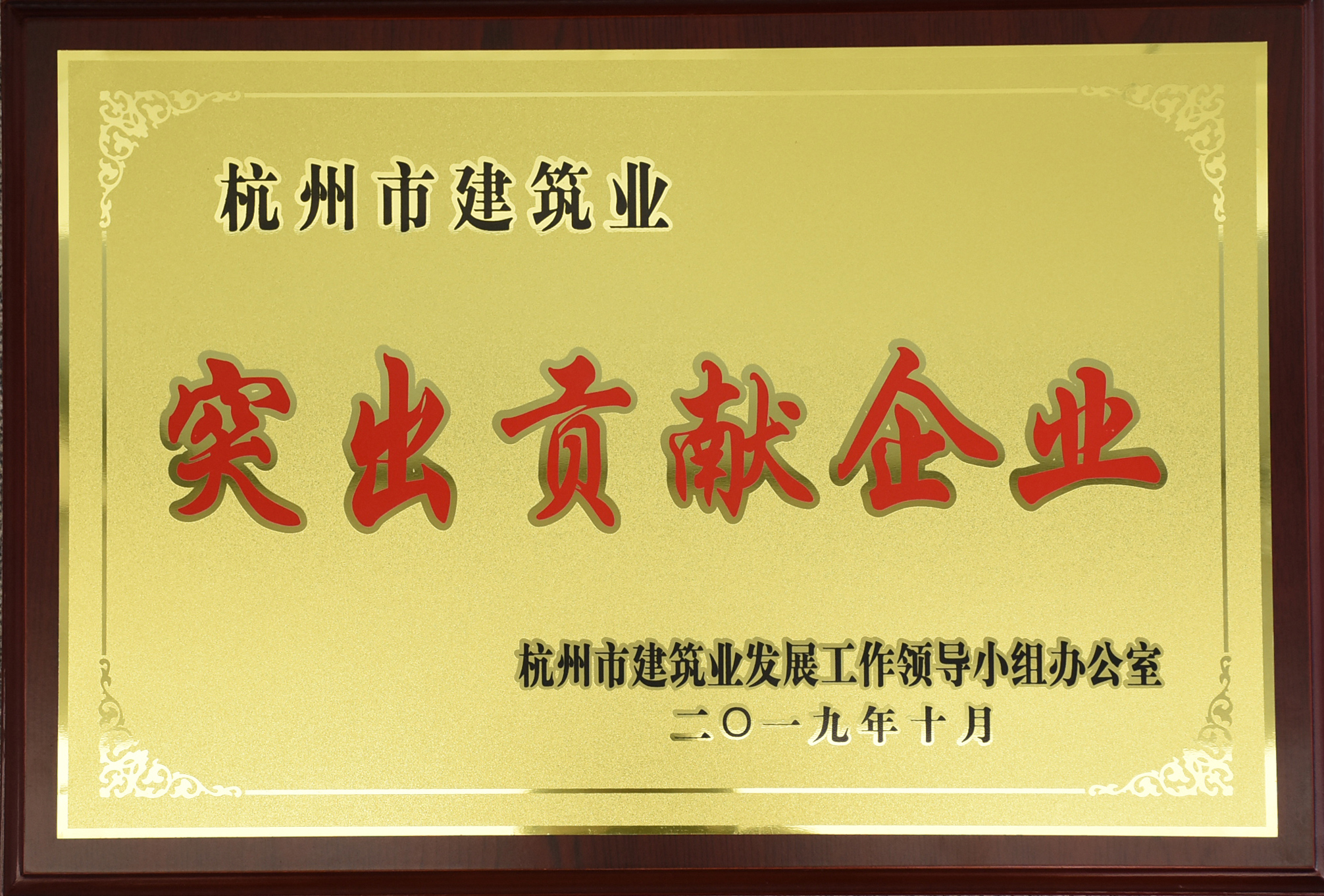 2019年杭州市建筑業(yè)突出貢獻(xiàn)企業(yè)