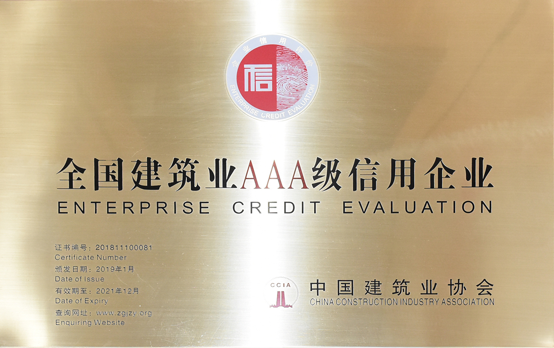 全國建筑業(yè)AAA級信用企業(yè)