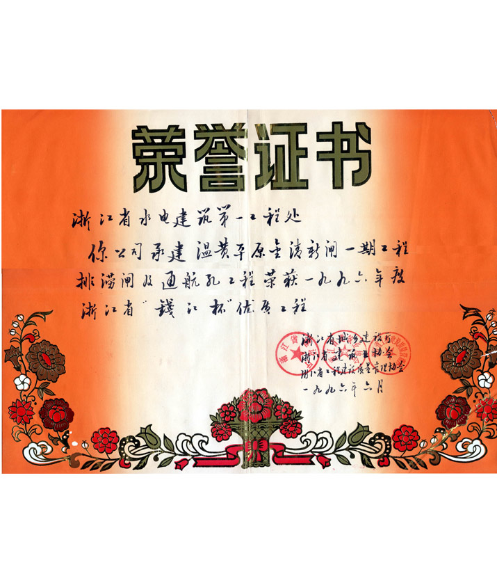 浙江省建設(shè)工程錢江杯獎(jiǎng)——溫黃平原金清新閘一期工程排澇閘及通航孔工程(1996)