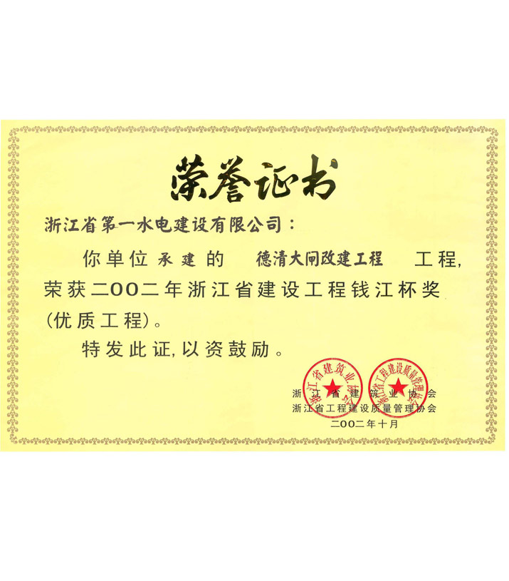 浙江省建設(shè)工程錢江杯獎(jiǎng)——德清大閘改建工程(2002)