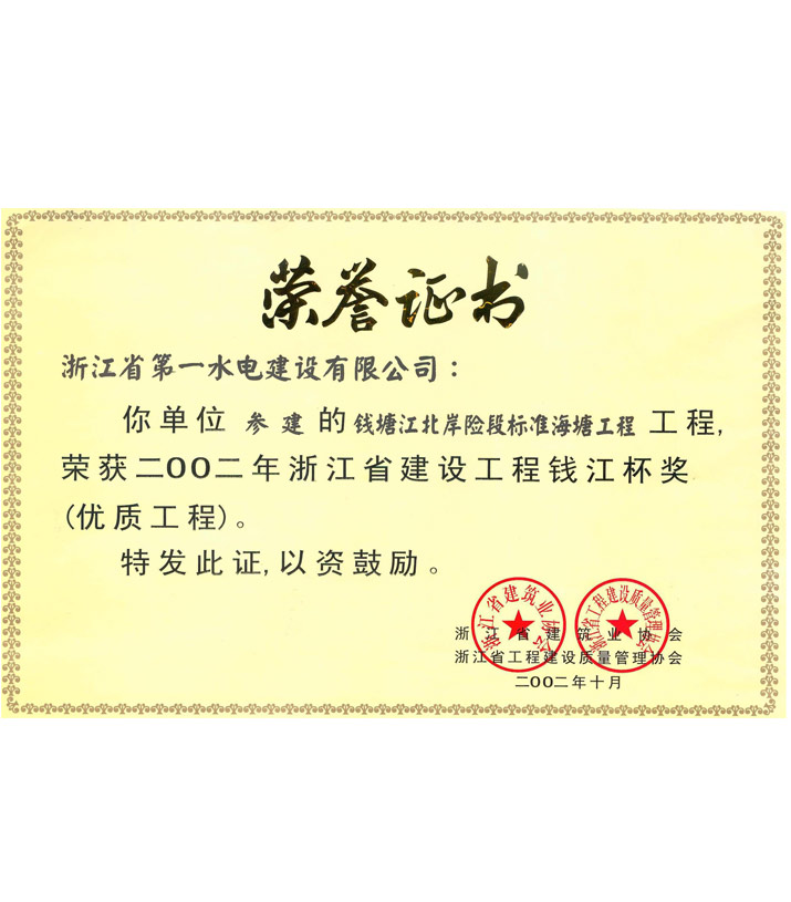 浙江省建設(shè)工程錢江杯獎(jiǎng)——錢塘江北岸險(xiǎn)段標(biāo)準(zhǔn)海塘工程(2002)