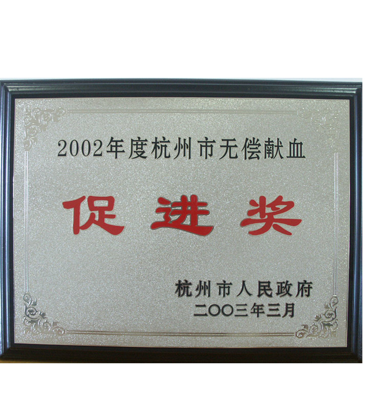 杭州市無償獻血促進獎(2002)