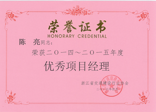 陳亮——2014-2015年度優(yōu)秀項(xiàng)目經(jīng)理