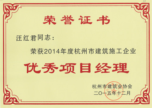 汪紅君——2014年度杭州市建筑施工企業(yè)優(yōu)秀項(xiàng)目經(jīng)理