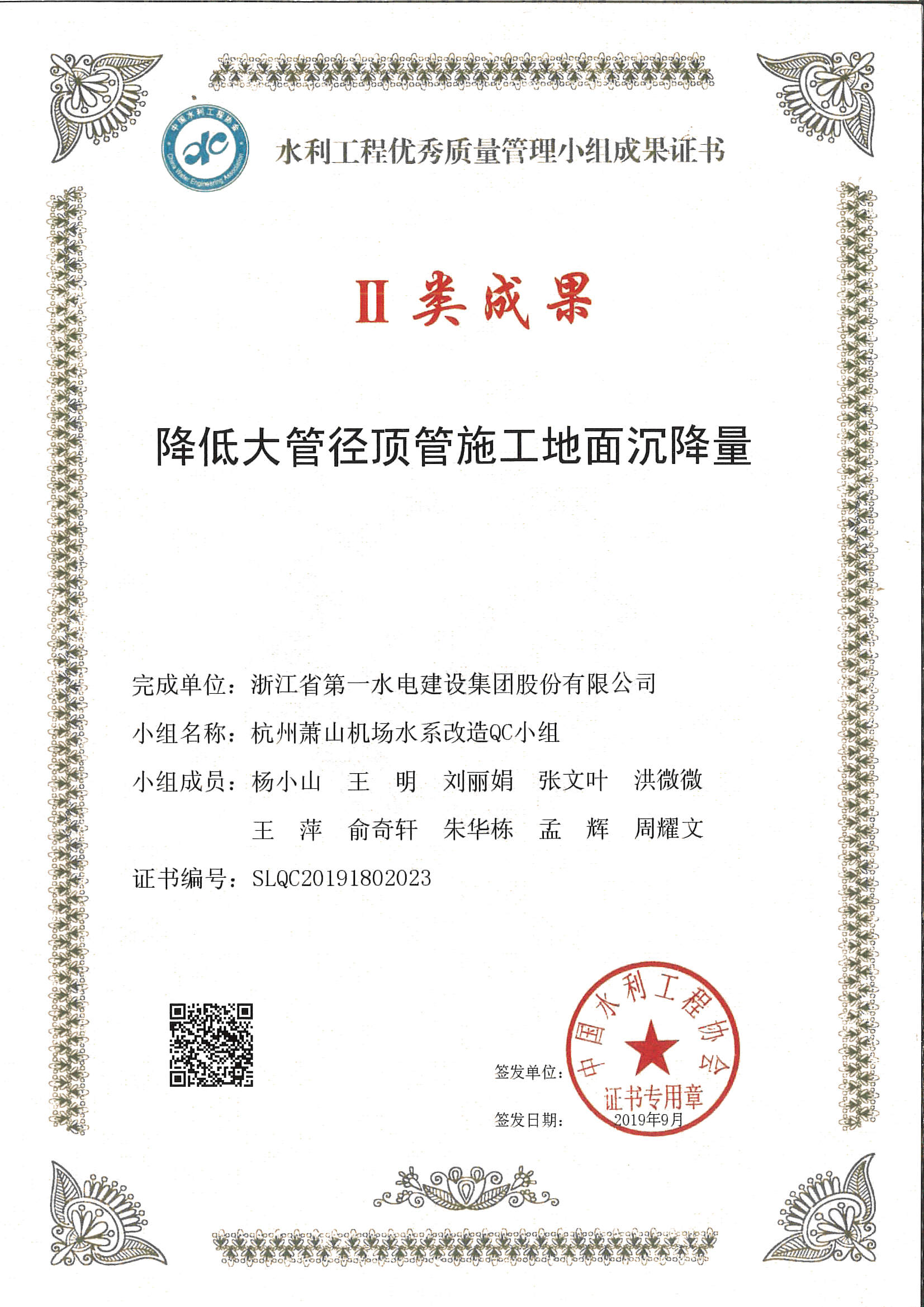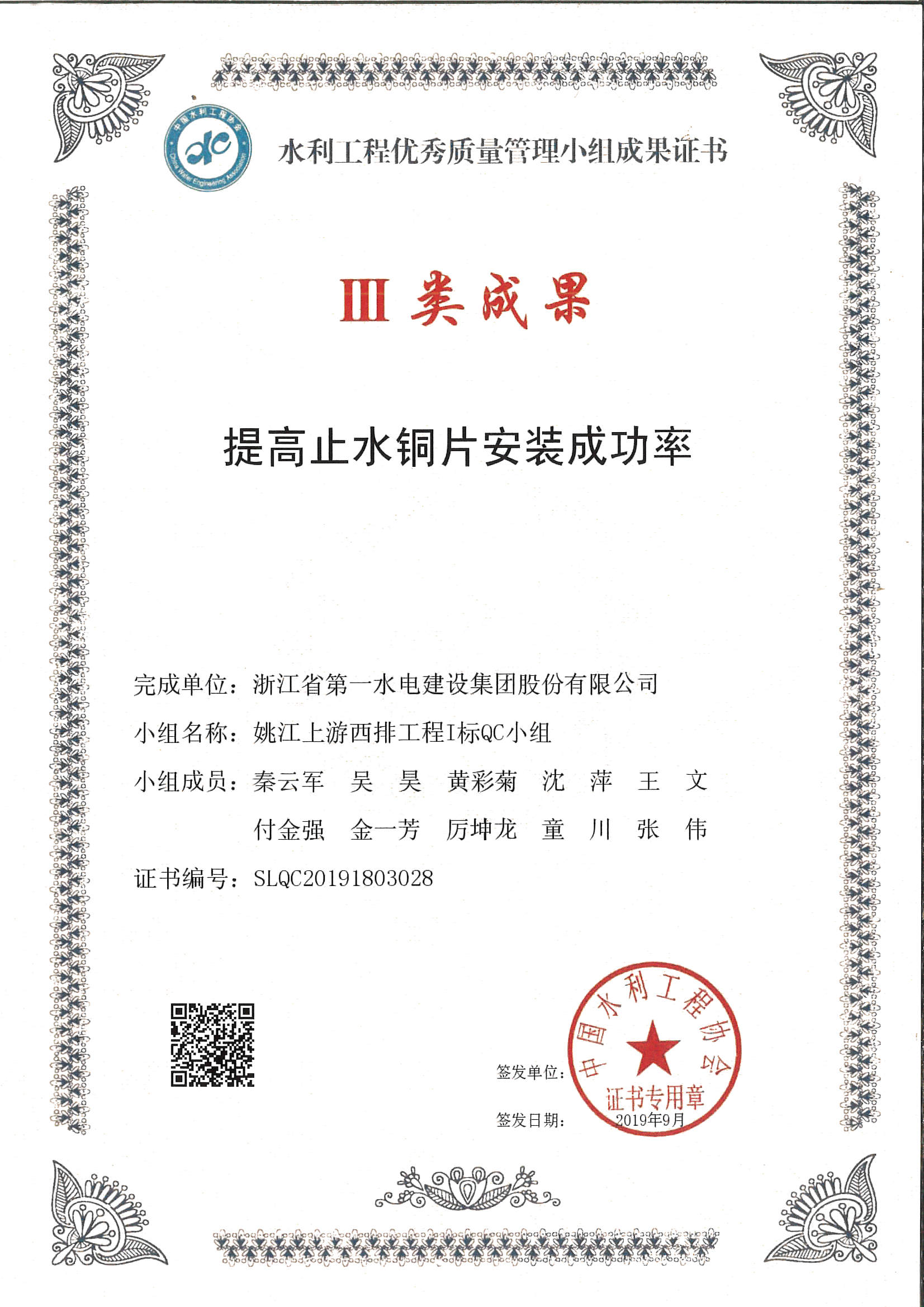 2018水利優(yōu)秀質(zhì)量管理小組一等級(jí)(姚江上游西排工程施工I標(biāo)QC小組)