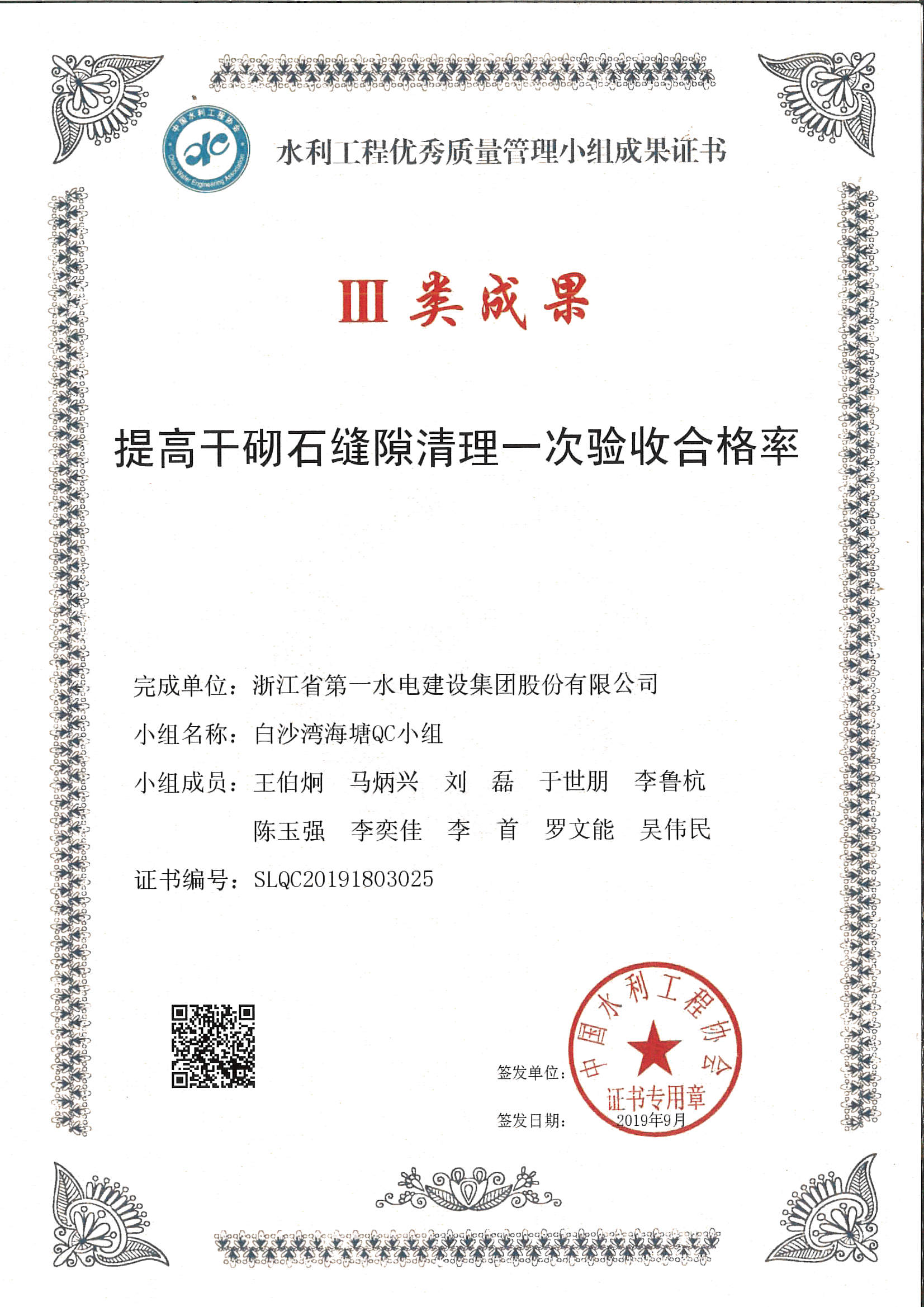 Improve the Acceptance One-Time Pass Rate of Dry Masonry Gap Cleaning on September, 2019