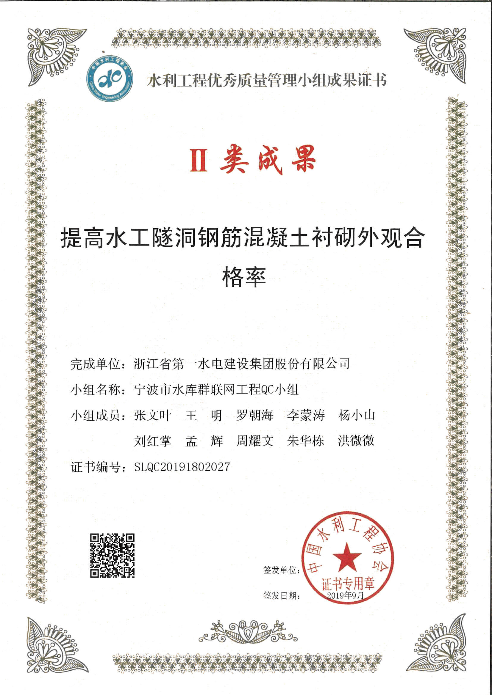 提高水工隧洞鋼筋混凝土襯砌外觀合格率(2019年09月)