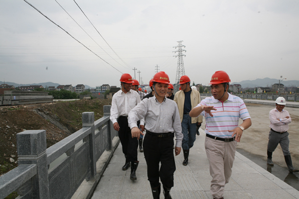 陳廳長一行檢查了正在施工的閘站、跨河橋梁、輸水河道等工程,聽取了工程建設進度、度汛措施落實、安全生產(chǎn)措施等情況匯報 。陳廳長對工程形象進度、施工質(zhì)量管理等作了充分的肯定,對工程的下一步建設提出了要求。他指出,浙東引水蕭山樞紐工程是浙東水資源優(yōu)化配置格局中的關鍵性工程,是浙東引水系統(tǒng)工程的龍頭,省委、省政府對這項工程建設非常重視。要求參建各方一定要高度重視,克服一切困難,盡最大努力,按時、優(yōu)質(zhì)建設工程。陳廳長還強調(diào),要求在即將到來的主汛期,參建各方要把安全度汛考慮更周全,針對不同情況、不同施工階段,加強與地方政府和有關單位的聯(lián)系溝通,發(fā)現(xiàn)問題,及時采取有效措施,確保工程安全度汛,保障施工建設進度和施工質(zhì)量安全。
