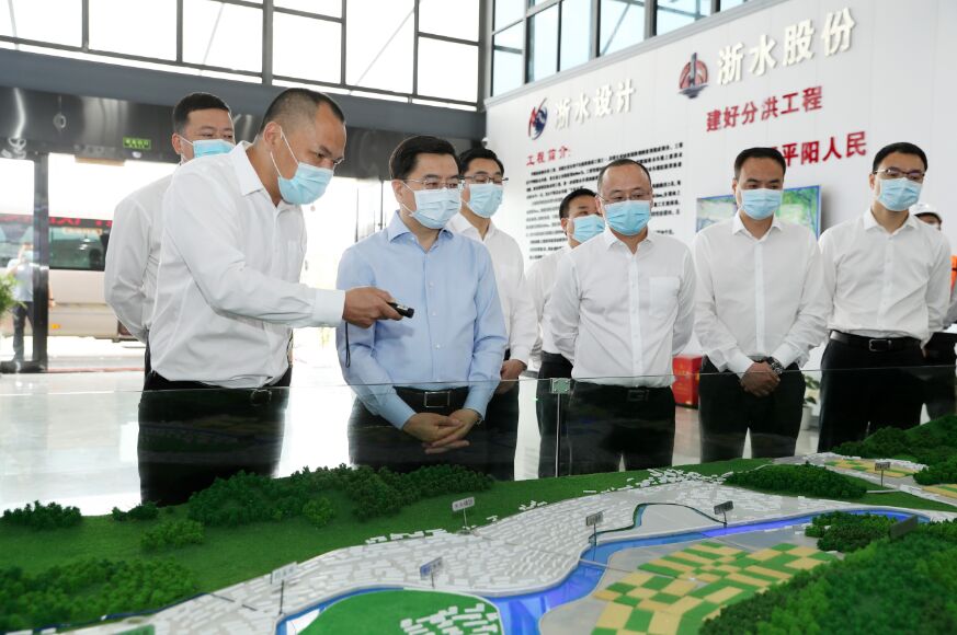 5月7日上午,省委常委、溫州市委書記陳偉俊,市委常委、秘書長(zhǎng)王軍,常務(wù)副市長(zhǎng)陳建明在市水利局長(zhǎng)狄鴻鵠及平陽(yáng)縣委書記董智武等的陪同下,前往平陽(yáng)縣南湖分洪工程檢查督導(dǎo)工作。
