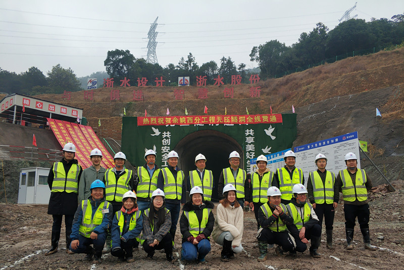 余姚西分工程無(wú)壓隧洞全長(zhǎng)2194米,設(shè)計(jì)斷面為襯后凈寬6.6m的城門洞型式,設(shè)計(jì)流量為120m3/s,隧洞全斷面進(jìn)行鋼筋混凝土襯砌。隧洞涉(及)鐵(路)段共1094m,涉及50萬(wàn)伏超高壓電網(wǎng)段共計(jì)900m,最近點(diǎn)離蕭(山)甬(寧波)鐵路距離僅為260m,涉及50萬(wàn)伏超高壓電網(wǎng)最近處僅為100m,無(wú)疑對(duì)施工建設(shè)增添了巨大的“麻煩”。項(xiàng)目部經(jīng)過(guò)半年多時(shí)間反復(fù)奔走于上海、杭州、寧波、紹興等地,攻克了鐵路爆破方案3次專家論證、鐵路6個(gè)部門安全協(xié)議簽署、50萬(wàn)伏超高壓電網(wǎng)方案論證及安全協(xié)議簽署。工程自2019年8月1日開(kāi)工以來(lái),歷經(jīng)480個(gè)日夜,克服了兩條鐵路試爆工作及控制爆破、圍巖條件差、施工環(huán)境復(fù)雜等問(wèn)題,項(xiàng)目部積極發(fā)揚(yáng)“釘釘子”的精神,克服一個(gè)又一個(gè)困難,終于在2020年11月23日啃下了這個(gè)“硬骨頭”,比原計(jì)劃工期提前60天順利貫通,用行動(dòng)詮釋了浙水股份人的“智慧”和“擔(dān)當(dāng)”。