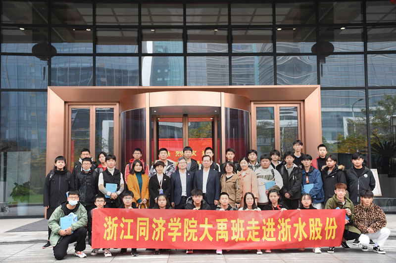 11月26日,來自浙江同濟科技職業(yè)學院大禹班的30名大一新生,在三位老師的帶領(lǐng)下走進浙水大廈,開展實踐學習。集團公司總經(jīng)理趙余紅、黨委副書記兼副總經(jīng)理沈建揚及有關(guān)部門負責人熱情接待了來訪師生。