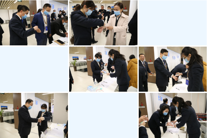 與會(huì)人員嚴(yán)格執(zhí)行會(huì)前疫檢工作,亮綠碼、測(cè)體溫,全程佩戴口罩,保持安全距離。
