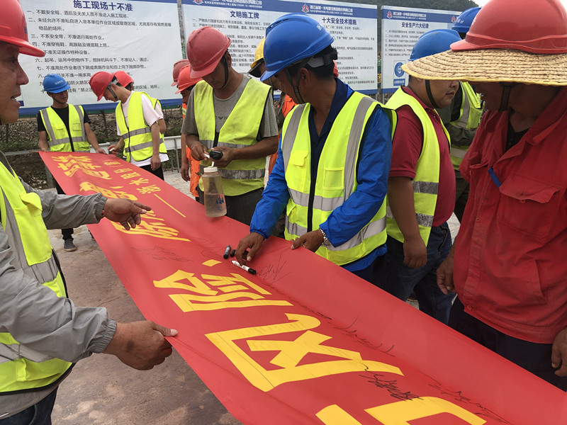次日,小編的微信朋友圈跳出一條消息,使我眼前一亮:“浙水股份杭富線城際鐵路項目部開展安全月“防風險、除隱患、遏事故”宣誓活動”。